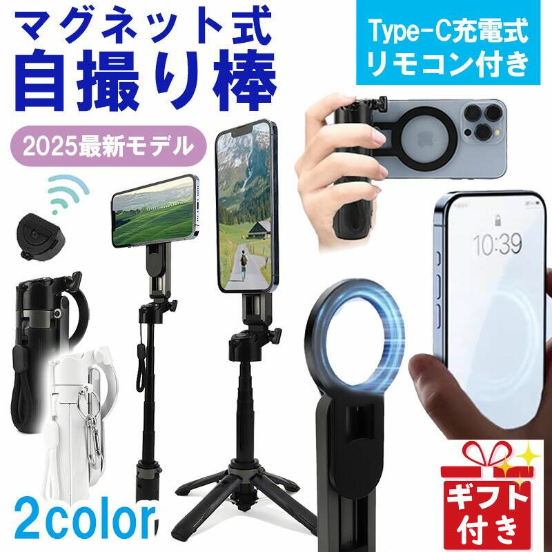 【エントリーで5倍PT!10%OFF】【新品】スマホ三脚 ミニ三脚 magsafe用 自撮り棒 スマホスタンド 携帯スタンド 折りたたみ式 磁気マグネット式 フック付き 多機能360度回転 アルミ製 セルフィー/生放送/撮影録画/動画に最適 Android/iPhone17に対応 手持ち スマートフォン 車