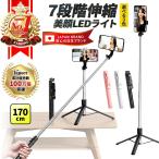 自撮り棒 三脚付き LEDライト 7段階伸縮 170cm セルカ棒 リモコン付 軽量 iPhone Android対応 送料無料
