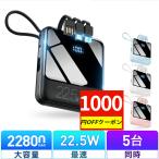 「クーポンで1980円」モバイルバッテリー 軽量 小型 22800mAh 22.5W最速&5台同時充電 ケーブル内蔵 携帯充電器 防災グッズ iPhone/Android対応
