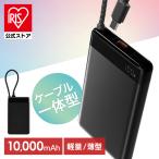 モバイルバッテリー 軽量 小型 10000mAh スマホ 約2回分 急速充電対応 USB Type-C ケーブル一体型 充電器 薄型 アイリスオーヤマ CE-A10020 * 安心延長保証対象