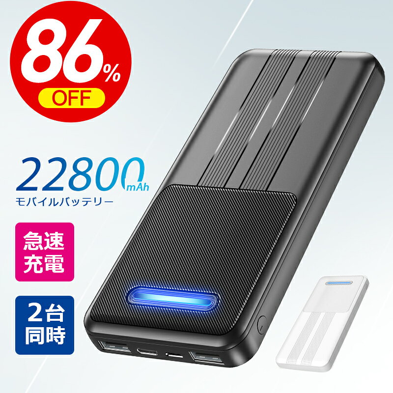モバイルバッテリー スマホ充電器 大容量 防災電源 20000mAh 小型 急速充電器 PSE認証済 残量表示 3台同時充電 携帯充電器 iPhone