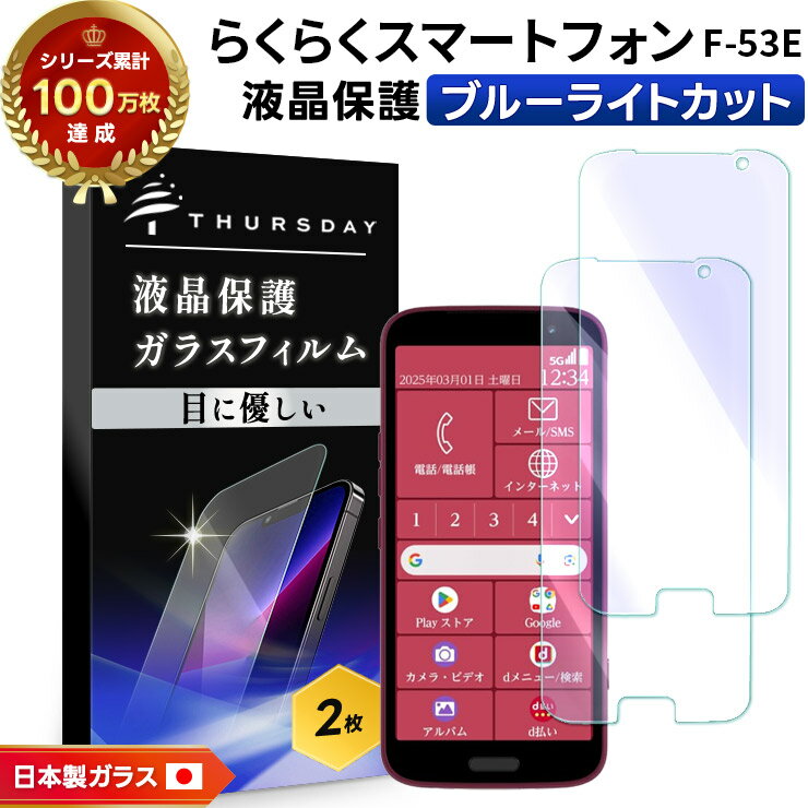 【LINE登録で10%OFF】 らくらくスマートフォン F-53E ガラスフィルム ブルーライトカット 2枚入り フィルム ガラス スマホフィルム 強化ガラス 液晶保護 指紋防止 硬度9H スマホ 画面保護 保護フィルム 液晶 保護 docomo ドコモ らくらく f53e FCNT