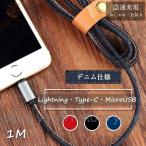 充電ケーブル Lightning android Type-C MicroUSB ライトニング usbケーブル usb対応 スマホケーブル タイプB タイプC レッド ブラック ブルー 耐久 デニム 1M