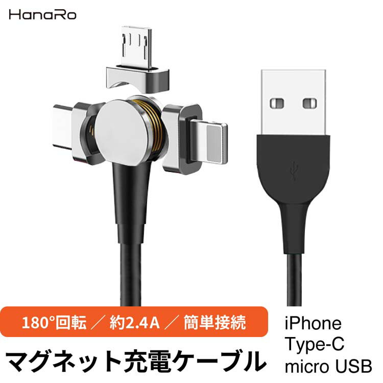 充電ケーブル マグネット 多機種対応 iOS Micro USB Type-C ライトニング 1m 2.4A 防塵 microusb typec スマホ iPhone Android