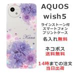 AQUOS wish5 アクオスウィッシュ5 SH-52F A502SH らふら 名入れ スマホケース ラインストーン スマホカバー 押し花風 フラワーバードパープル