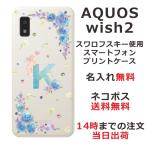 AQUOS Wish4 アクオスウィッシュ4 SH-52E SH-M27 らふら 名入れ スマホケース ラインストーン スマホカバー 押し花風 フラワーアレンジ