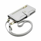 Android One S10 スマホケース(ライトグレー)斜めがけ スマホショルダー 手帳型 ストラップ付き くすみカラー