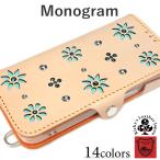 モノグラム 手帳型 ケース 14色 iPhone GooglePixel Xperia Galaxy AQUOS TPU カバー リング付 栃木レザー 革 本革 Rickys 名入れ r334