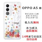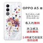 OPPO A5 5G オッポ A5 5G らふら 名入れ スマホケース ラインストーン スマホカバー 押し花風 ポップフラワー