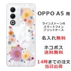 OPPO A5 5G オッポ A5 5G らふら 名入れ スマホケース ラインストーン スマホカバー 押し花風 パステルダンシンフラワー