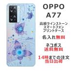 OPPO A77 ケース オッポA77 カバー ラインストーン かわいい らふら 名入れ フライングバタフライ