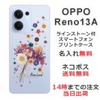 OPPO Reno13A オッポ レノ13A らふら 名入れ スマホケース ラインストーン スマホカバー 押し花風 フラワーアレンジ