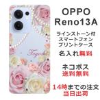 OPPO Reno13A オッポ レノ13A らふら 名入れ スマホケース ラインストーン スマホカバー 押し花風 ローズピンク