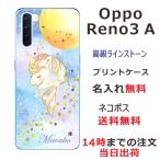 Oppo Reno3A ケース オッポ リノ3a カバー ラインストーン かわいい らふら 名入れ ユニコーン