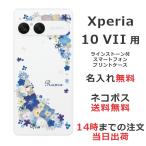 Xperia 10 VII SO-52F SOG16 A502SO エクスペリア10 VII らふら 名入れ スマホケース ラインストーン スマホカバー 押し花風 ビビットブルーフラワー