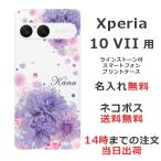 Xperia 10 VII SO-52F SOG16 A502SO エクスペリア10 VII らふら 名入れ スマホケース ラインストーン スマホカバー 押し花風 フラワーバードパープル