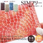 シムフリー ケース HUAWEI ASUS ZenFone HTC NEXUS 楽天モバイル AQUOS ARROWS XPERIA スマホケース 手帳型 本革 エナメル クロコダイル ベルトなし