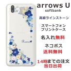 arrows U ケース arrows J 801FJ 901fj アローズU カバー ラインストーン かわいい フラワー 花柄 らふら 名入れ 押し花風 ビビットブルーフラワー
