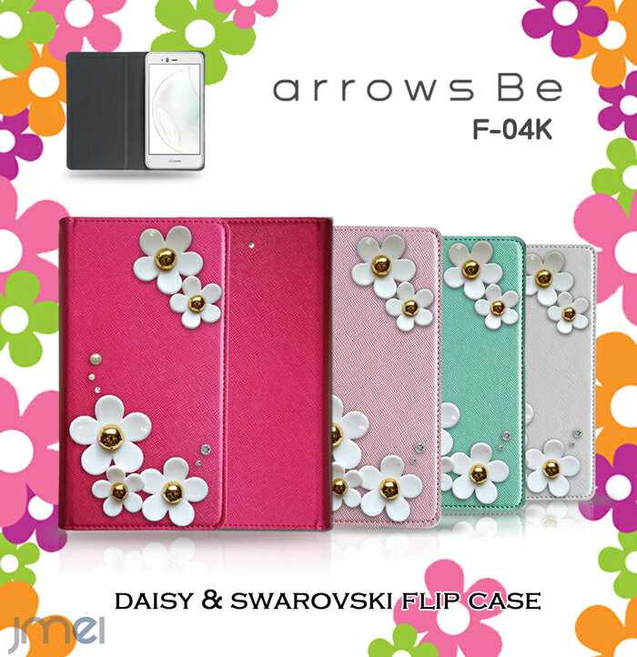 arrows Be F-04K ケース デイジー スワロフスキー アローズ be カバー 手帳型 スマホケース スマホ スマホカバー docomo スマートフォン 携帯 革 手帳