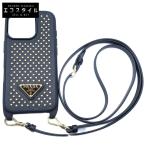 新品同様/ PRADA プラダ 1ZH209 サフィアーノレザー スタッズ iPhone16 Proケース その他 ブラック レディース