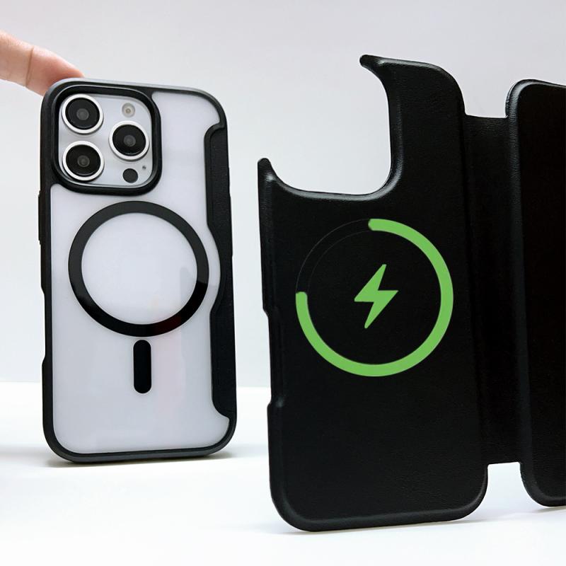 スマホケース iPhone17 iPhone16 レザーケース カード収納 マグネット開閉式 耐衝撃 ブラック(x2000)