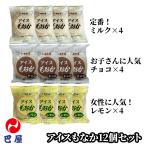 送料無料 巴屋アイスもなか 12個セット(ミルク×4 チョコ×4 レモン×4) 懐かし 広島 呉市 あっさり クリーミー 低カロリー もち米使用 ギフト バレンタイン