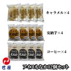 送料無料 巴屋アイスもなか 12個セット(キャラメル×4 安納芋×4 コーヒー×4)懐かし 広島 呉市 あっさり クリーミー 低カロリー もち米 ギフト バレンタイン