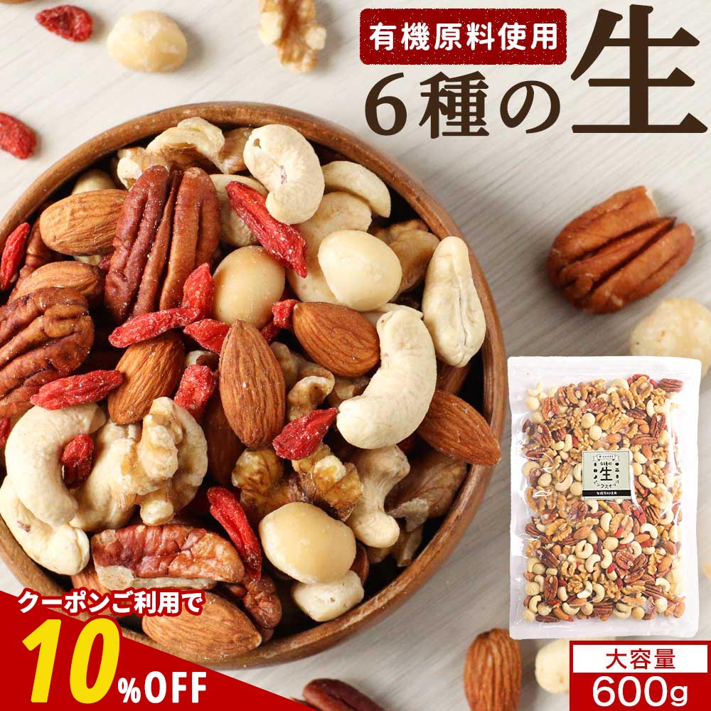 【全品クーポンで10%OFF】 ミックスナッツ 無塩 600g 大容量 小分け オーガニック 生 ナッツ ギフト ミックスナッツ 食塩 無添加 有機 ミックスナッツ 6種 アーモンド クルミ マカダミアナッツ カシューナッツ ピーカンナッツ クコの実 健康 送料無料 レビュー特典