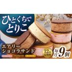 ふるさと納税 菓子 アイス 長崎県 長与町 12回定期便 エアリーショコラサンド 毎月9個(チョコレート/ストロベリー/キャラメル各3個)長与町/CAKE SHOP FA…