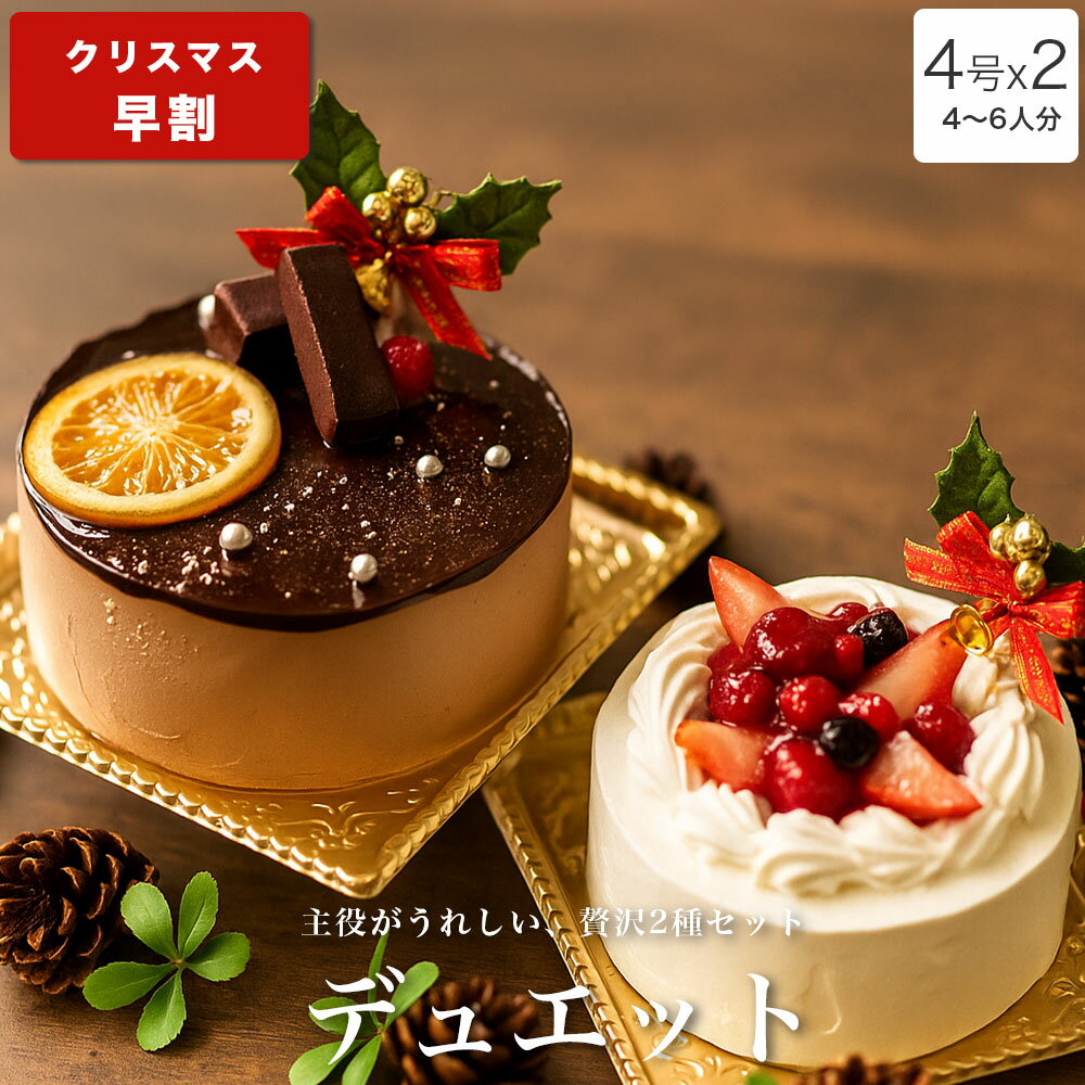 【超早割】 4号 2個 セット クリスマスケーキ 2025 クリスマス 予約 プレゼント ツイン ケーキ ザッハトルテ & 苺 チーズ タルト (のし包装不可)
