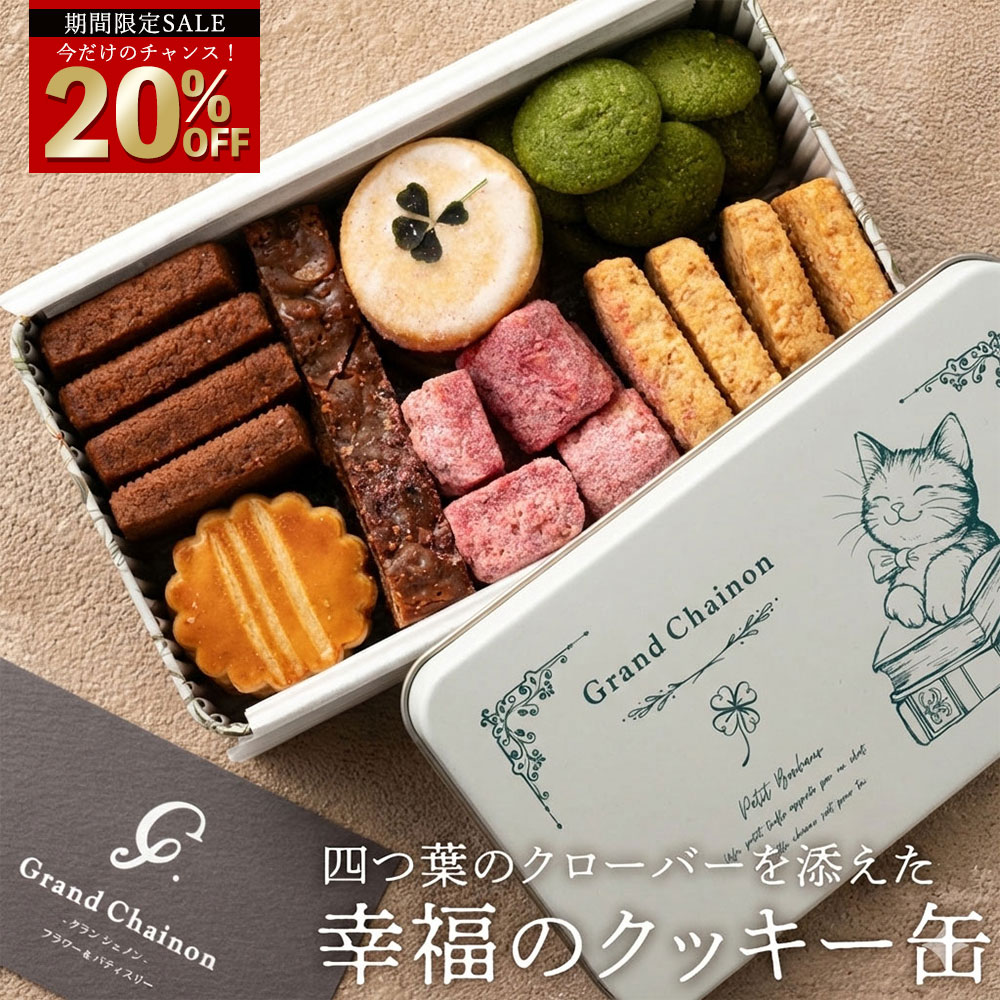 \今だけ!クーポン利用で20%OFF/ お取り寄せ スイーツ ギフト クッキー【幸福のクッキー缶】クッキー缶 誕生日 可愛い 詰め合わせ お取り寄せ スイーツ グランシェノン オリジナル 送料無料 かわいい おしゃれ セール SALE