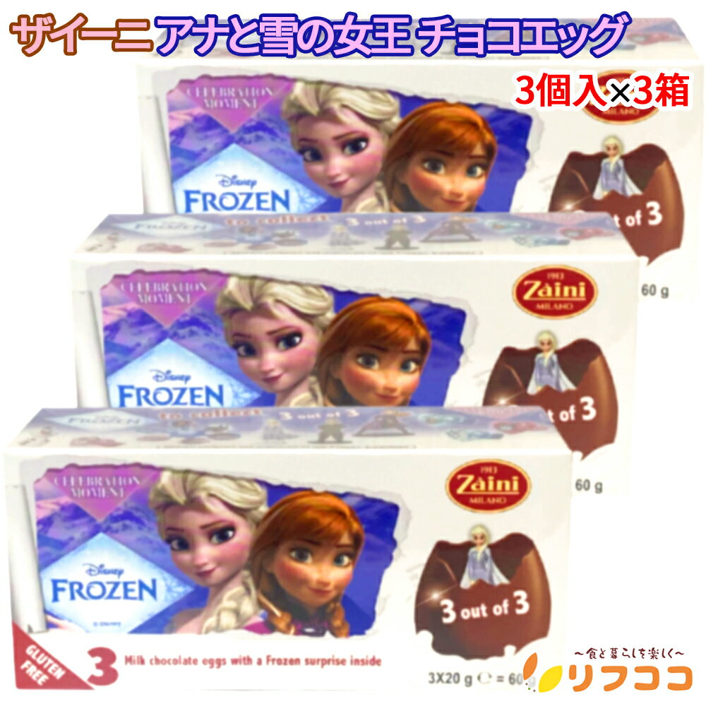 【回数制限無しのレビュー書いて10%OFFクーポン配布中♪】(メール便発送/レターパック発送)ザイーニ Zaini アナと雪の女王 チョコレートエッグ 1箱(3個入り)×3箱セット ディズニー キャラクター チョコエッグ