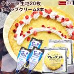 1枚ずつ解凍できる クレープの皮 大きめ24cm 20枚 & 冷凍ホイップクリーム1000ml×3本 セット クレープの生地 冷凍ホイップ フローズンホイップ