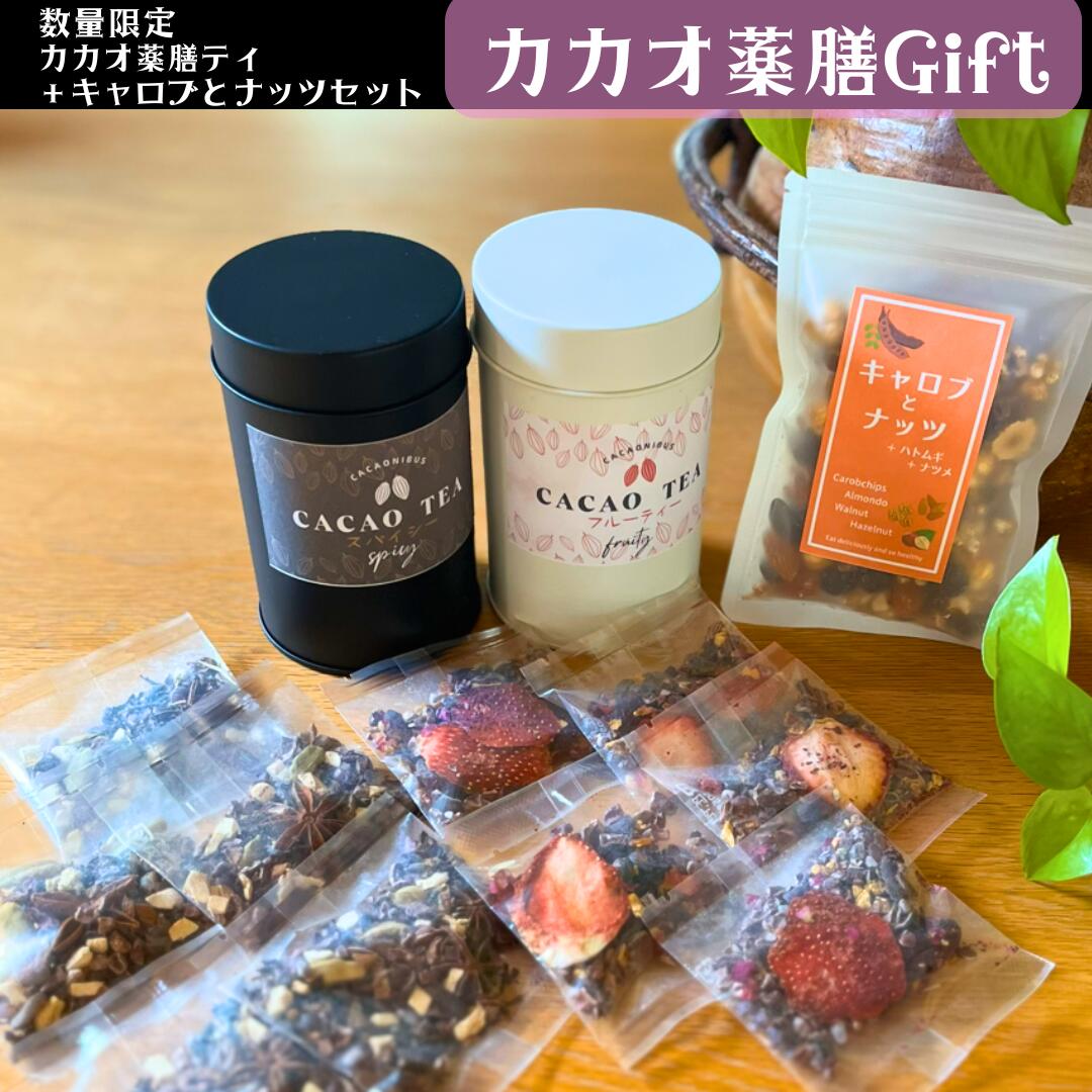 3商品で10%offクーポン!! 野草茶 健康茶 送料無料【選べるカカオ薬膳ギフト 】砂糖不使用 フルーティカカオティ スパイシーカカオティ 「どちらか」もしくは「どちらも」選べる キャロブとナッツ のセット♪ バレンタイン ヘルシーギフトに 購入 通販 1月 冬 ダイエット