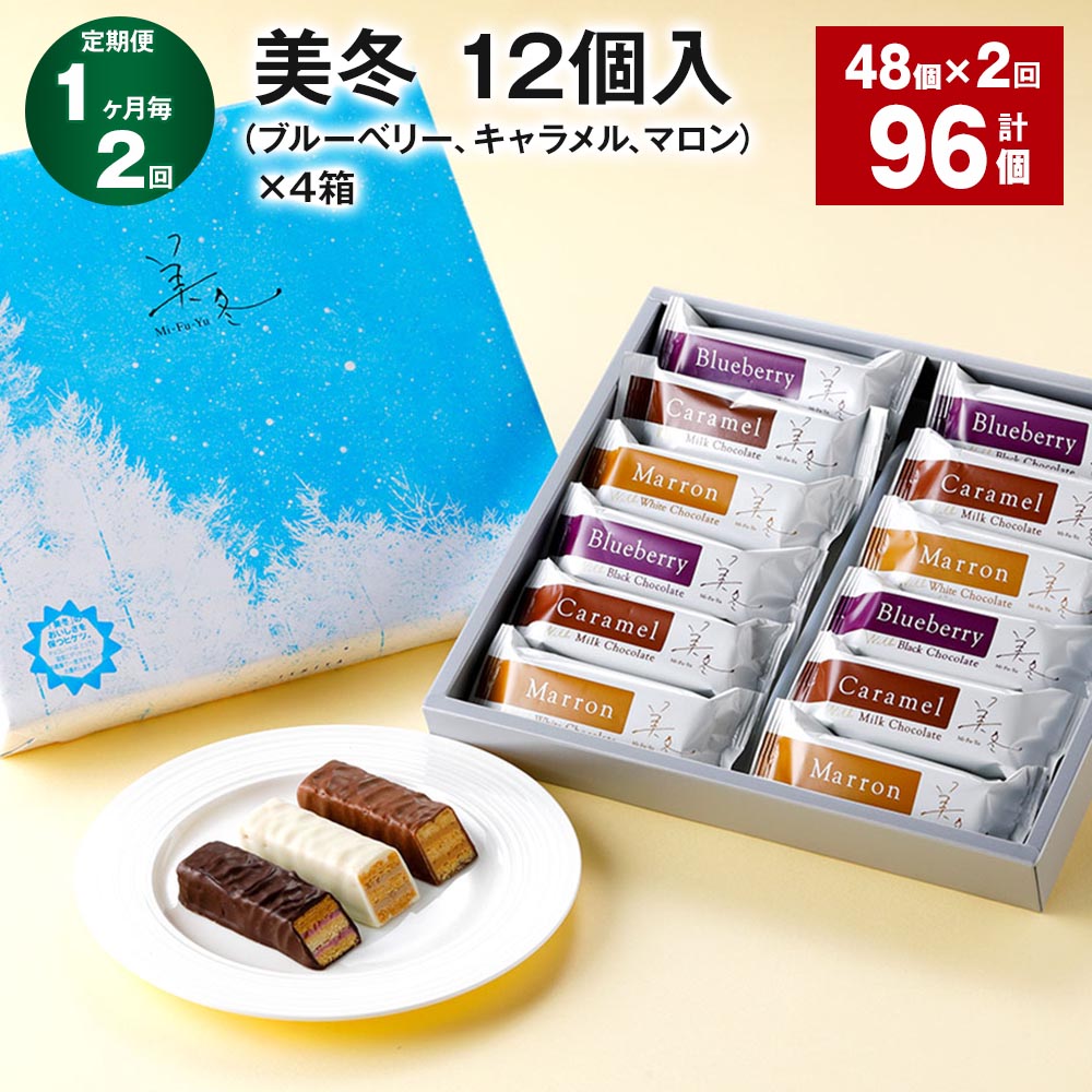 【ふるさと納税】【定期便】【1ヶ月毎2回】美冬 12個入(ブルーベリー、キャラメル、マロン)×4箱 48個 計96個(48個×2回) ミルフィーユ パイ チョコレート ケーキ お菓子 菓子 おかし 食べ比べ スイーツ デザート 北海道 北広島市 送料無料