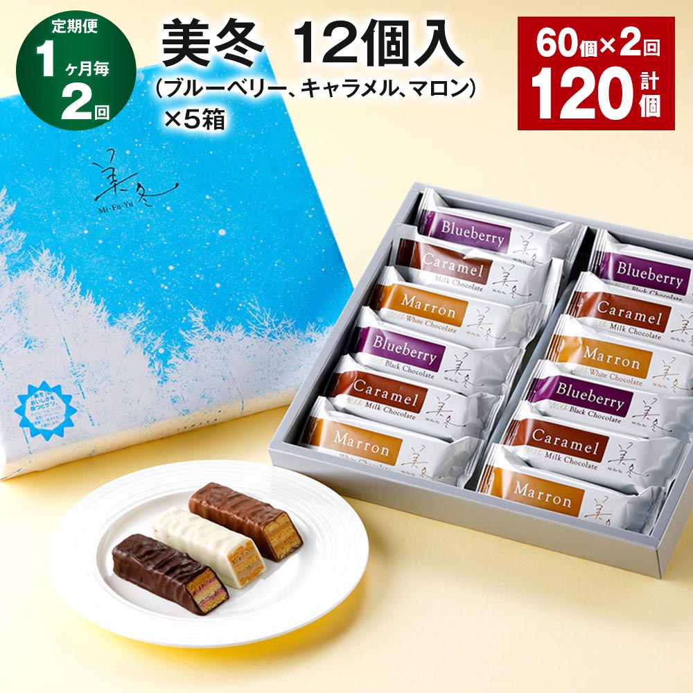 【ふるさと納税】【定期便】【1ヶ月毎2回】美冬 12個入(ブルーベリー、キャラメル、マロン)×5箱 60個 計120個(60個×2回) ミルフィーユ パイ チョコレート ケーキ お菓子 菓子 おかし 食べ比べ スイーツ デザート 北海道 北広島市 送料無料