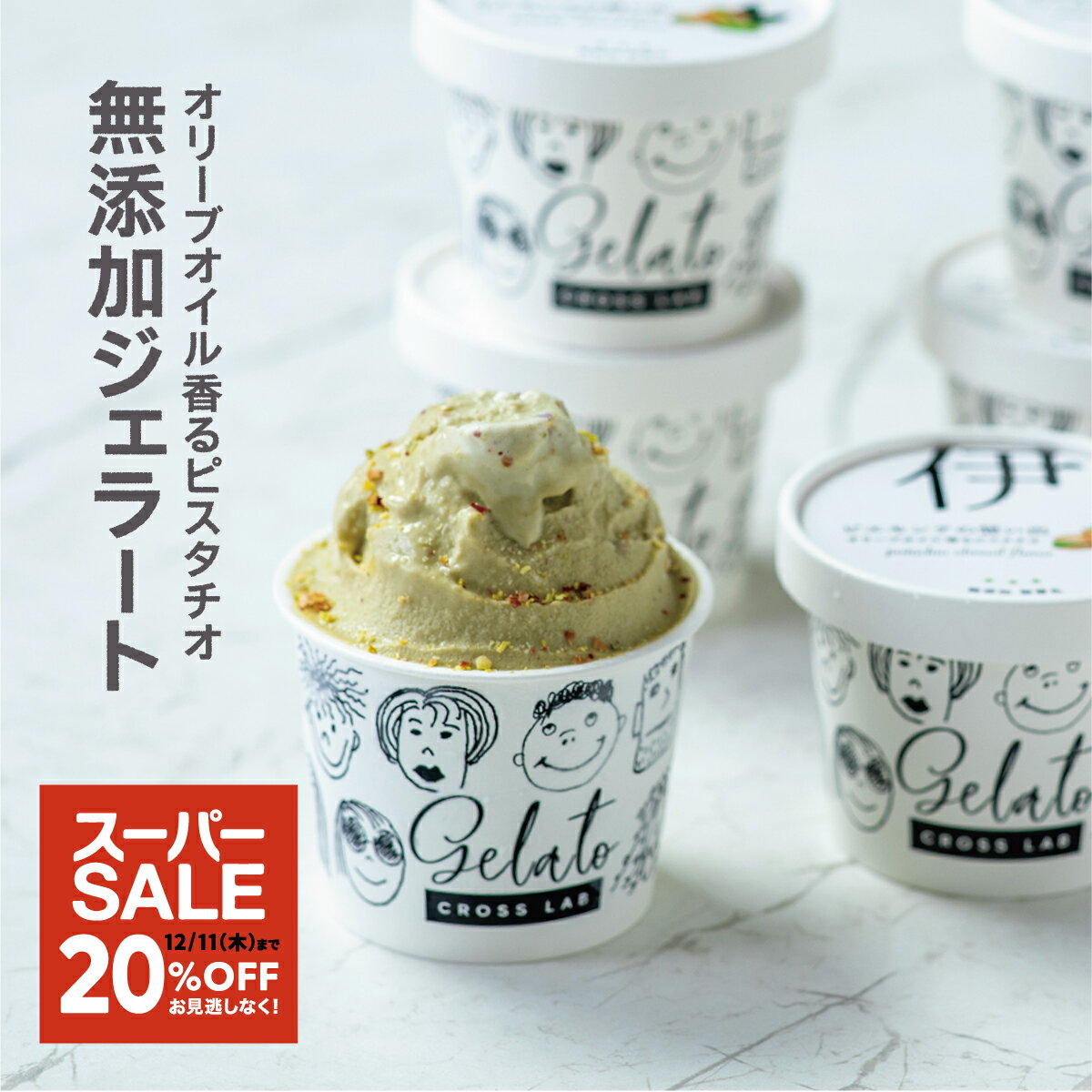 \スーパーSALE 20%OFF/【無添加ジェラート|ピスタチオ&オリーブオイル】 6個セット 無添加 CROSS TOKYO アイス アイスクリーム ピスタチオアイス イタリアンジェラート スイーツ ジェラート アイスセット レストラン シェフ監修 ギフト 贈り物 誕生日 お歳暮 クリスマス
