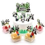 パンダの誕生日ケーキデコレーション21個 - 3Dソリッドパンダカップケーキトッパー 竹の木付き DIY パンダの置物 ケーキキット キッズパンダテー