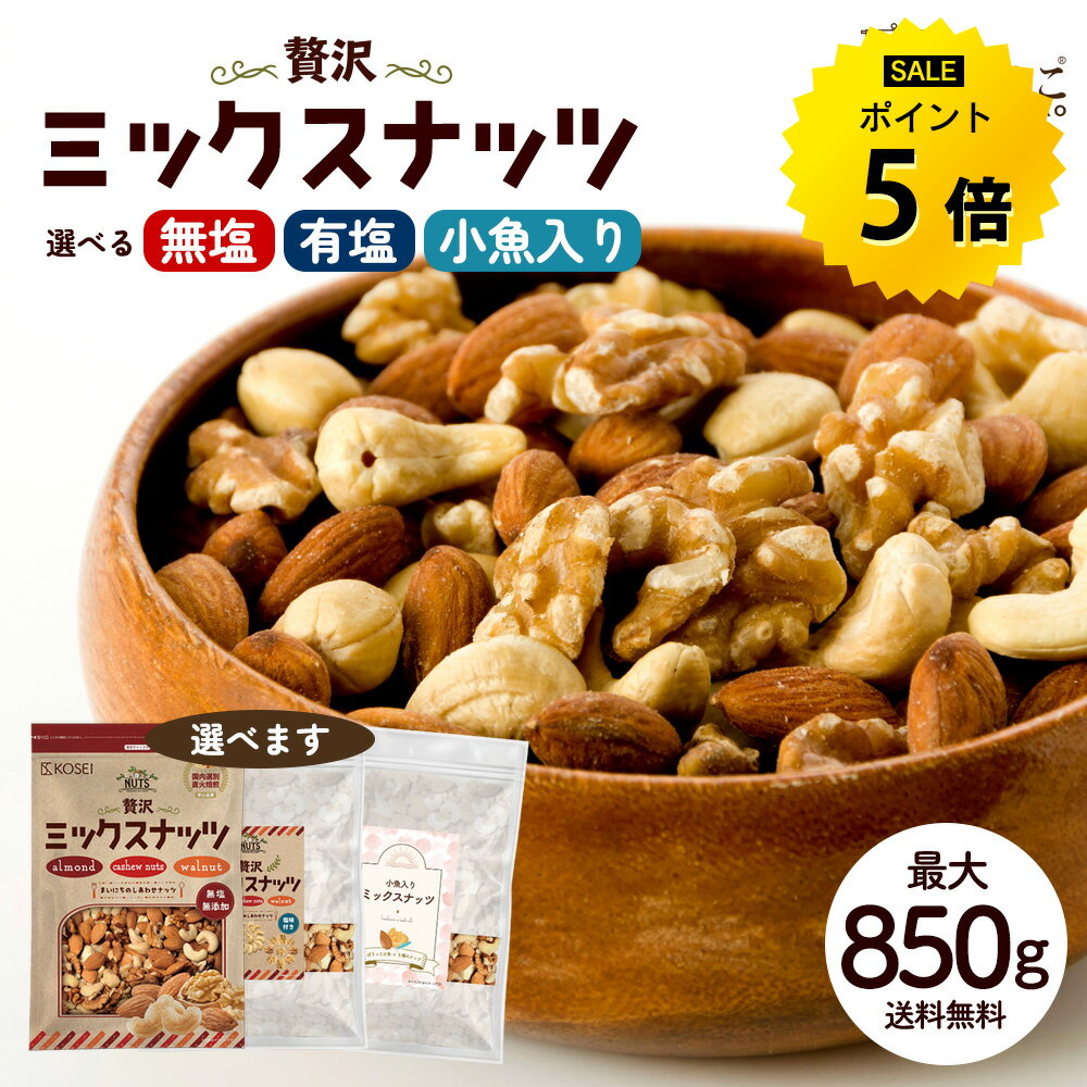 【今だけ★ポイント5倍】ミックスナッツ 最大850g 3種ナッツ 選べる 無塩 有塩 小魚入り ナッツ 無添加ナッツ 無塩ミックスナッツ 大容量ナッツ 贅沢3種 無添加 無塩 無油 アーモンド くるみ カシューナッツ 送料無料 大容量 お得用 美容 健康 おやつ おつまみ R