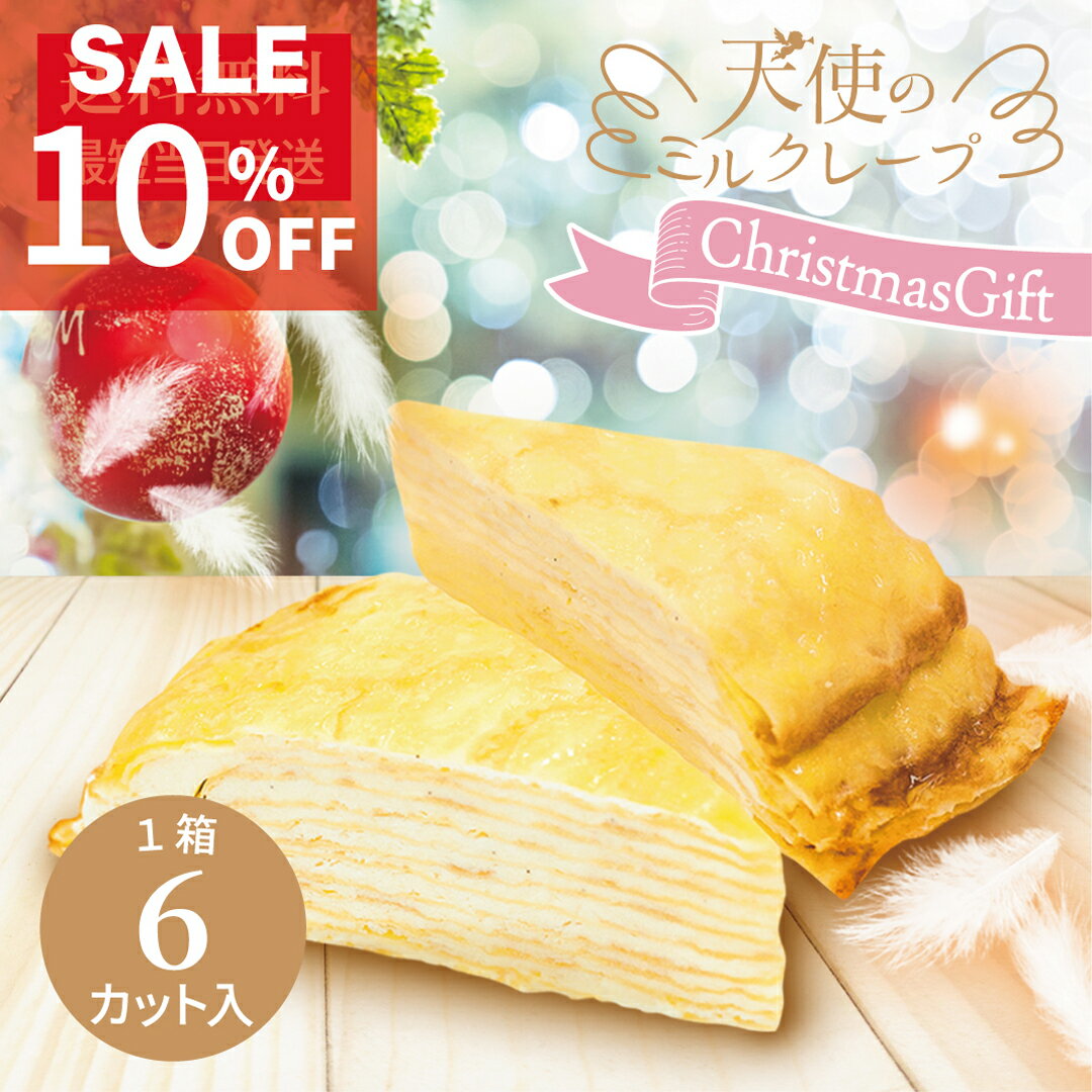 送料無料【天使のミルクレープ カット】75g×6個入 最短当日発送 冷凍 クリスマス お歳暮 お年賀 バースデーケーキ 誕生日 お取り寄せ ギフト お祝い お返し 手土産 プレゼント ご褒美スイーツ スポンジ不使用 甘さ控えめ カスタード 生クリーム デコレーション
