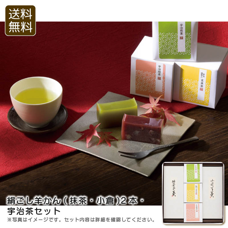 【5%off/2点以上/お得なクーポン配布中】全品対象絹ごし羊かん(抹茶・小倉)2本・宇治茶セット和菓子 お茶会 贈り物 抹茶スイーツ くつろぎ お祝い プレゼント 内祝い お返し 記念品 景品 自宅用※こちらの商品はメーカー直送品です。
