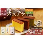 【ふるさと納税】【全12回定期便】カット包装カステラ 3箱入 (各5切入) プレーン 抹茶 チョコ 常温 五島市 / 文明堂総本店 [PEO016] 和菓子 洋菓子 詰め合わせ 化粧箱 餡 あんこ 贈答