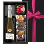 クリスマスギフト ワイン お花と焼き菓子 スイーツセット【無料 リボン包装 メッセージカード】レ・カカオ マドレーヌ スパークリング 枯れないお花 送料無料