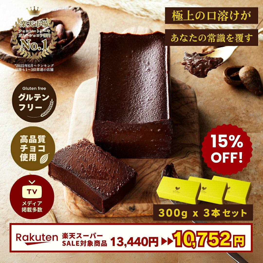[楽天スーパーSALE20%OFF] 生 ガトーショコラ 300g×3本 クリスマス 歳暮 グルテンフリー ギフト 人気 スイーツ 極上の口溶け ショコラテリーヌ チョコテリーヌ チョコレートケーキ 誕生日 誕生日ケーキ チョコケーキ クリスマスケーキ 冬ギフト プレゼント 帰省土産 手土産