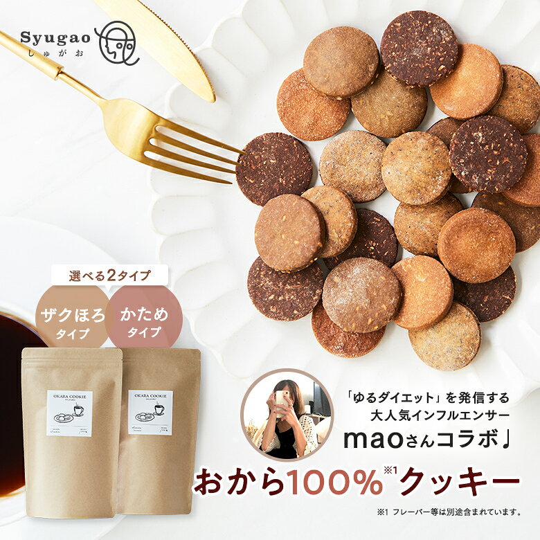【 クーポン 利用で15%OFF 3/24(水)20:00〜3/26(金)01:59 限定!】 maoさんコラボ おから 100% クッキー ( プレーン / ココアココナッツ / ゴマ / アールグレイ )選べる2タイプ( 食べやすいザクほろタイプ / 脂質控えめかためタイプ) グルテンフリー 個包装 パウチ