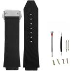 【互換品】HUBLOT互換 ウブロ互換 腕 時計 ベルト シリコン ラバー バンド ステンレス バックル 工具 (黒銀模様, ワンサイズ)