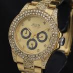 稼働 良品 エルジン 200M FK-909-A QZ ゴールド文字盤 クロノグラフ ストーンベゼル 石付 メンズ腕時計 OSW 2000000 NSK