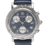 エルメス HERMES CL4.210 クリッパー ナクレ デイト 腕時計 クォーツ ネイビー文字盤 クォーツ 稼働品 SS レディース