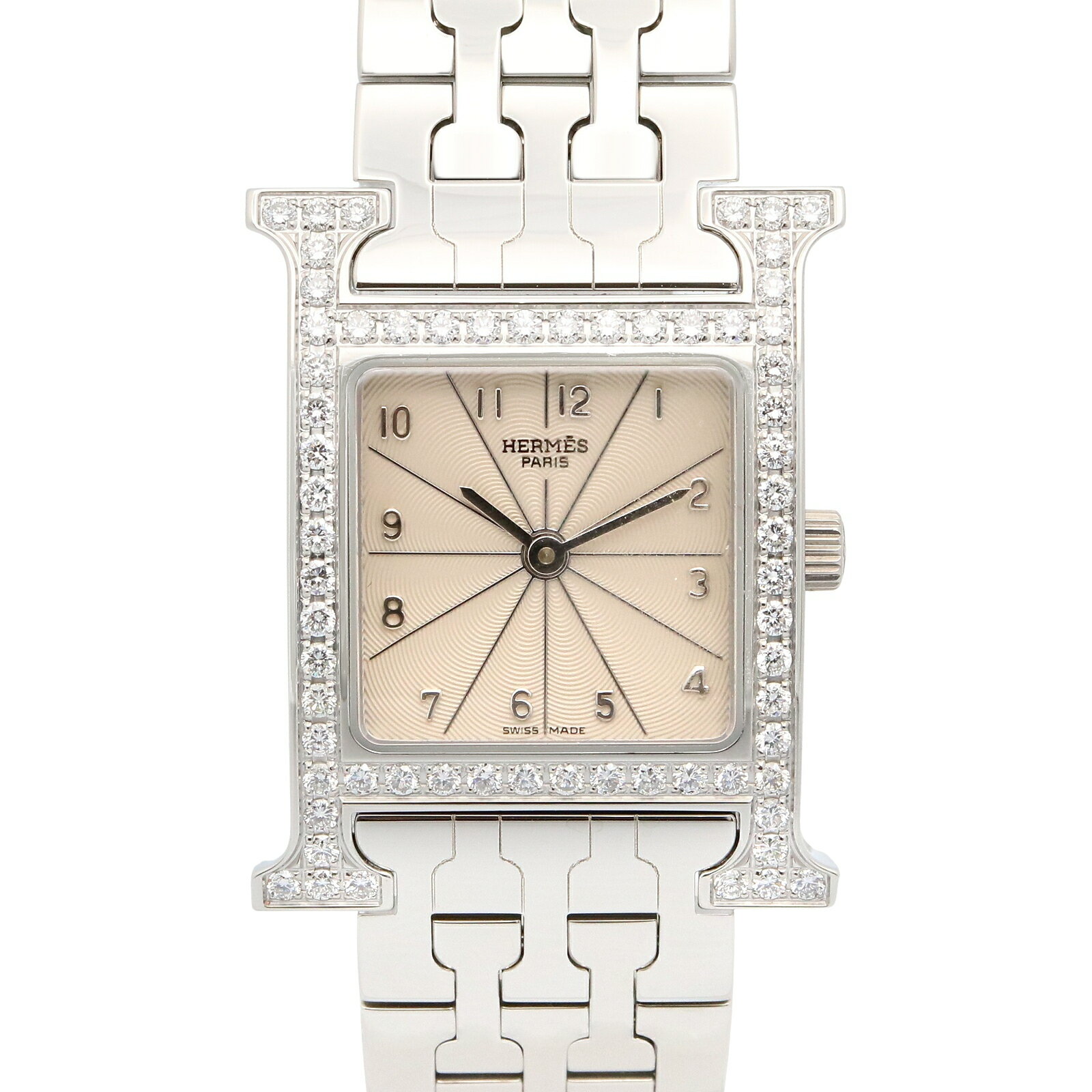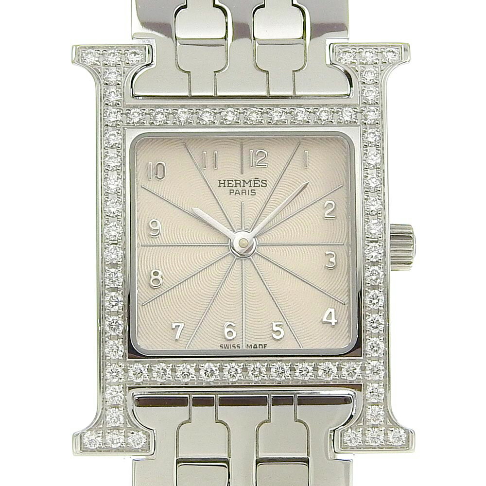 【スーパーセール10%OFF対象】エルメス HERMES Hウォッチ 腕時計 ダイヤベゼル HH1.230 ステンレススチール×ダイヤモンド クオーツ アナログ表示 アイボリー文字盤 Heure H watch レディース【中古】Aランク