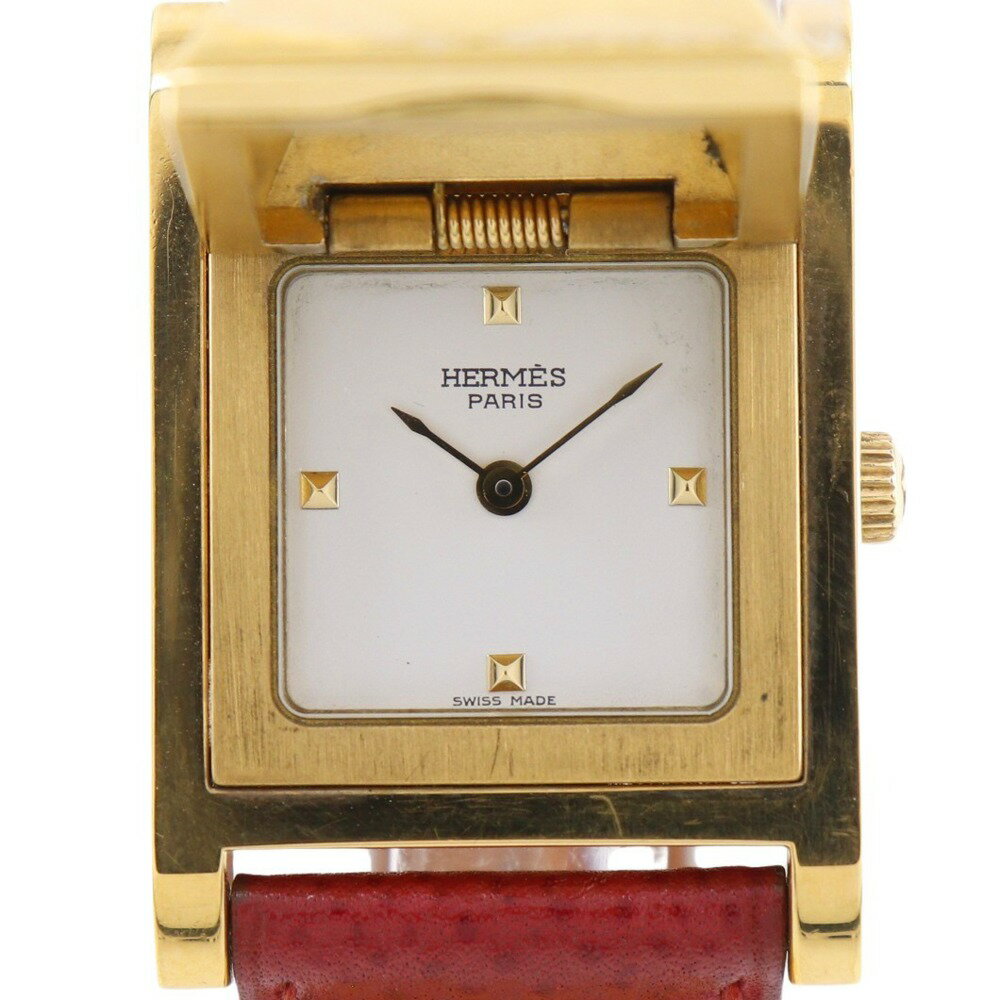 ◆全品5%OFFクーポン対象◆エルメス HERMES クリッパー 腕時計 時計 GP(ゴールドメッキ) ステンレススチール レディース アイボリー系 CL3.440 【中古】